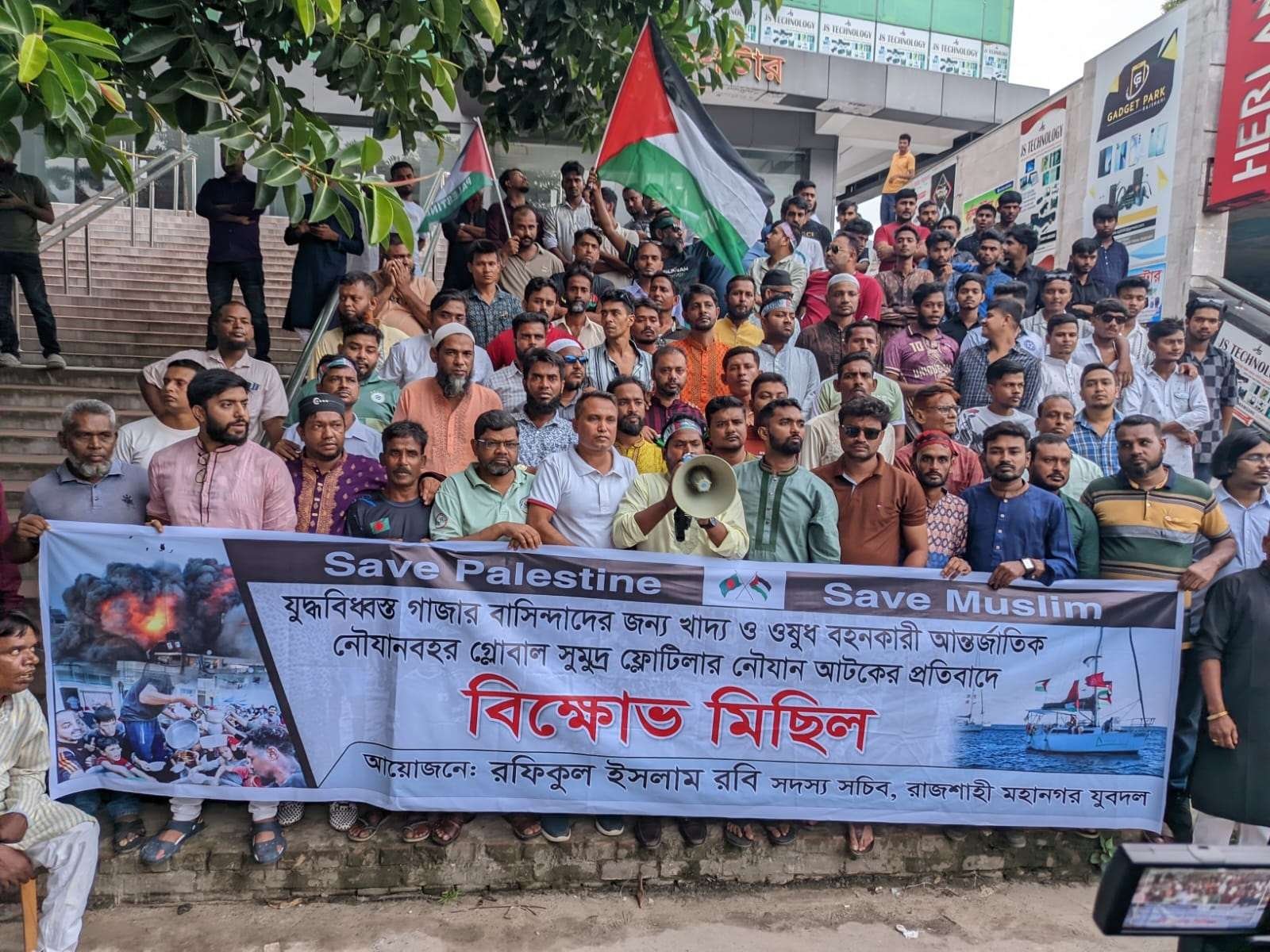 মহানগর যুবদলের উদ্যোগে ,যুদ্ধবিধ্বস্ত গাজার বাসিন্দাদের জন্য খাদ্য ও ওষুধ বহনকারী আন্তর্জাতিক নৌযানবহর গ্লোবাল সুমুদ্র ফ্লোটিলার নৌযান আটকের প্রতিবাদে বিক্ষোভ মিছিল ও সমাবেশ অনুষ্ঠিত হয়েছে।
