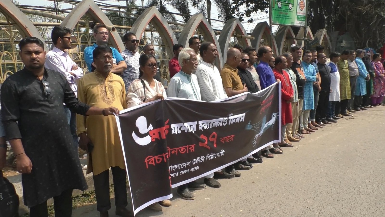যশোরে উদীচী হত্যাযজ্ঞের বিচার দাবিতে মানববন্ধন